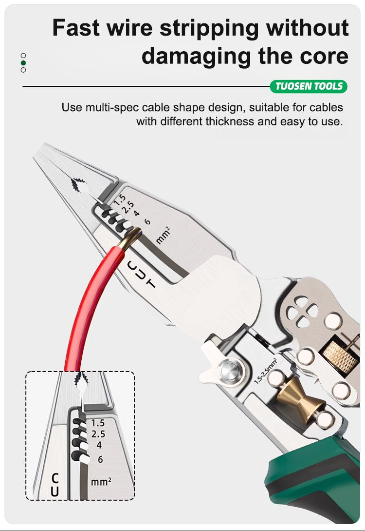 Say goodbye to messy tool bags! Precision stripping without damaging the core, with certified quality assurance! Professionally certified, a must-have for doubling the efficiency of electricians.