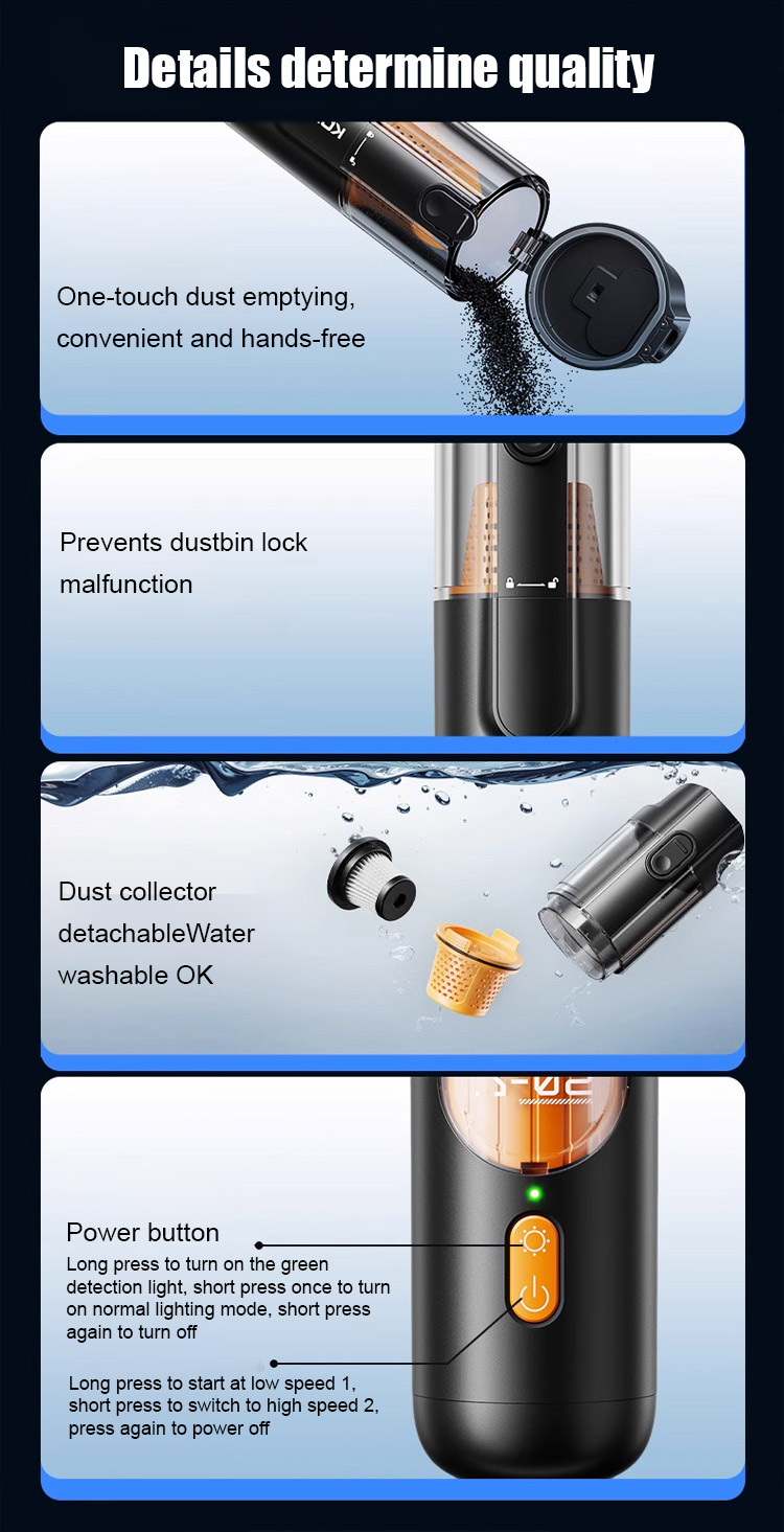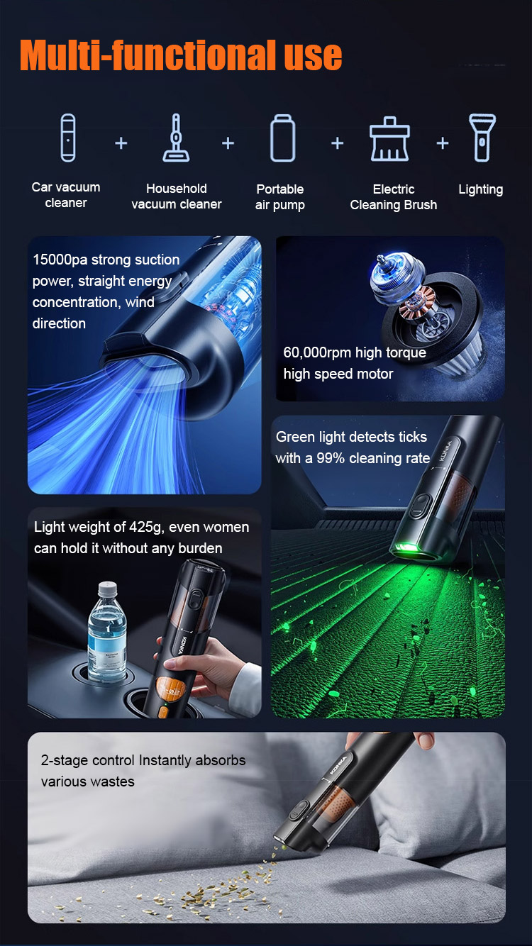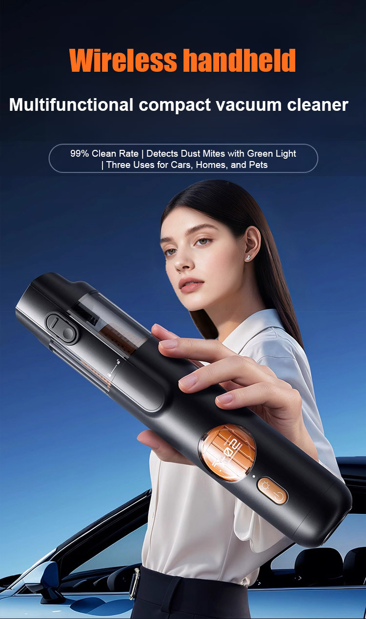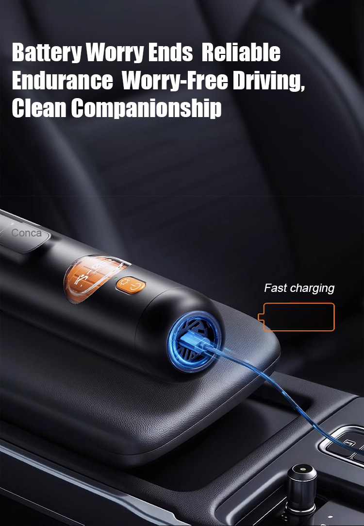 ⏰Equipped with a brushless motor sourced from Europe, it delivers a powerful 15,000Pa suction force, easily removing visible dust and even hair and fine dust hidden deep in the crevices of seats.