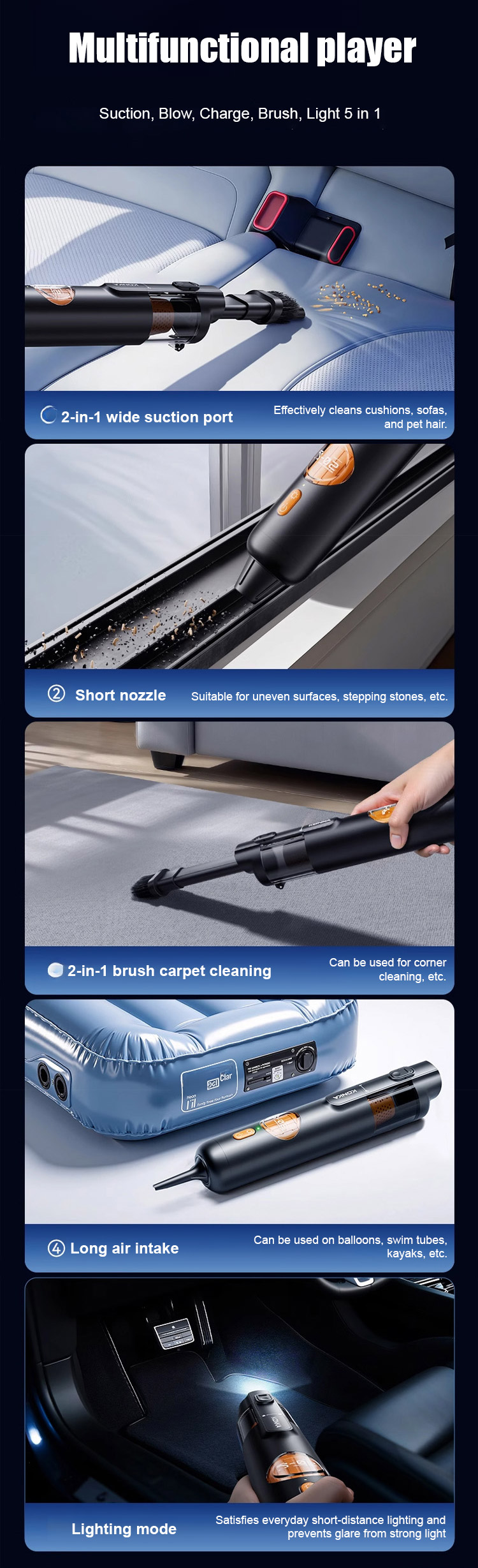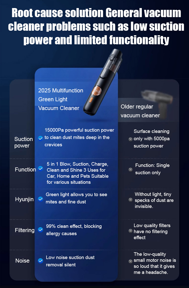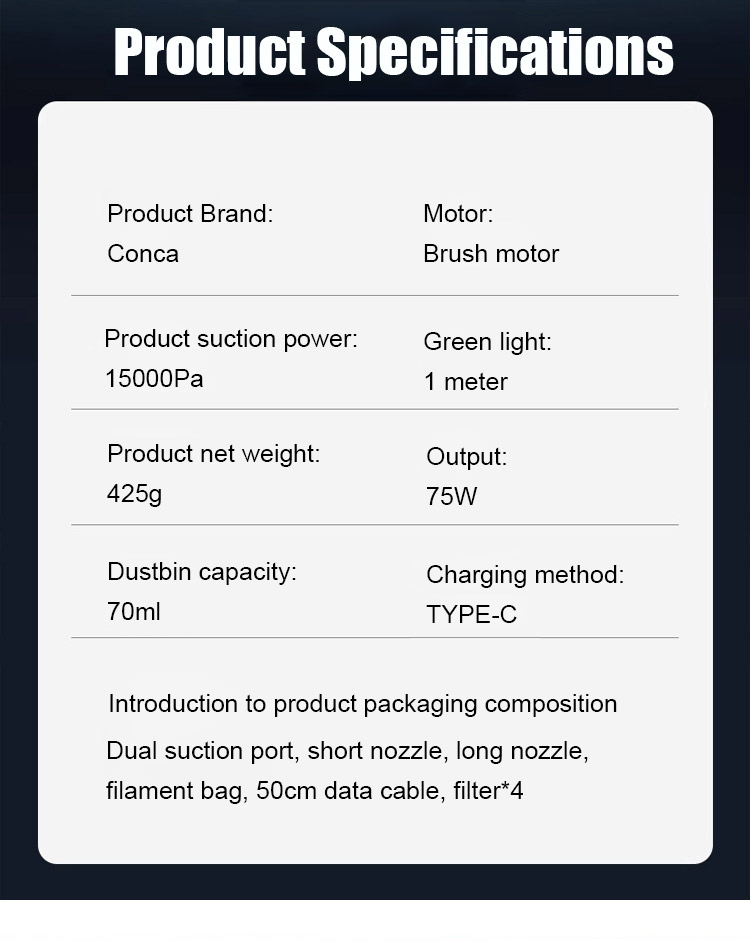 ⏰Equipped with a brushless motor sourced from Europe, it delivers a powerful 15,000Pa suction force, easily removing visible dust and even hair and fine dust hidden deep in the crevices of seats.